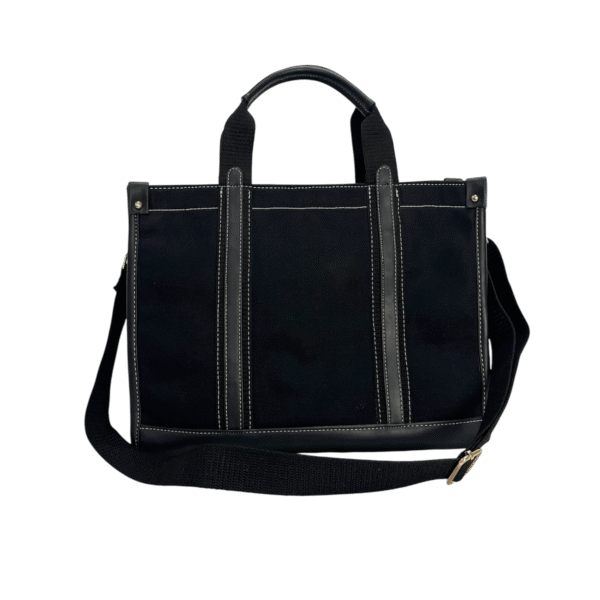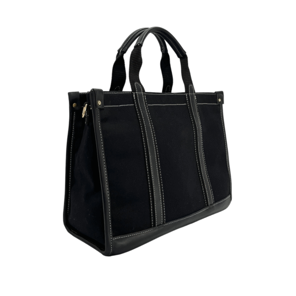 The Mirayya Classic Black Tote Bag blends everyday utility with sleek, contemporary design. Crafted from premium black canvas with contrast stitching and leather accents, this versatile carryall transitions effortlessly from workdays to weekends. Equipped with sturdy top handles and a detachable sling strap, it offers multiple carrying options for your comfort and convenience. Spacious yet structured, it’s perfect for those who prefer a smart and functional style.