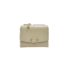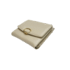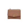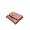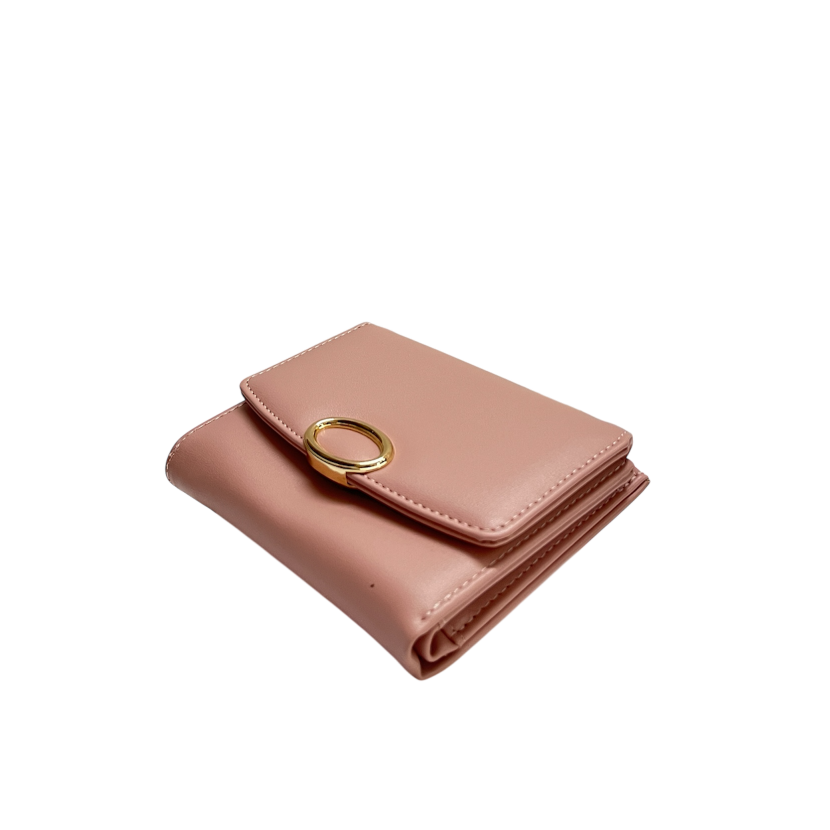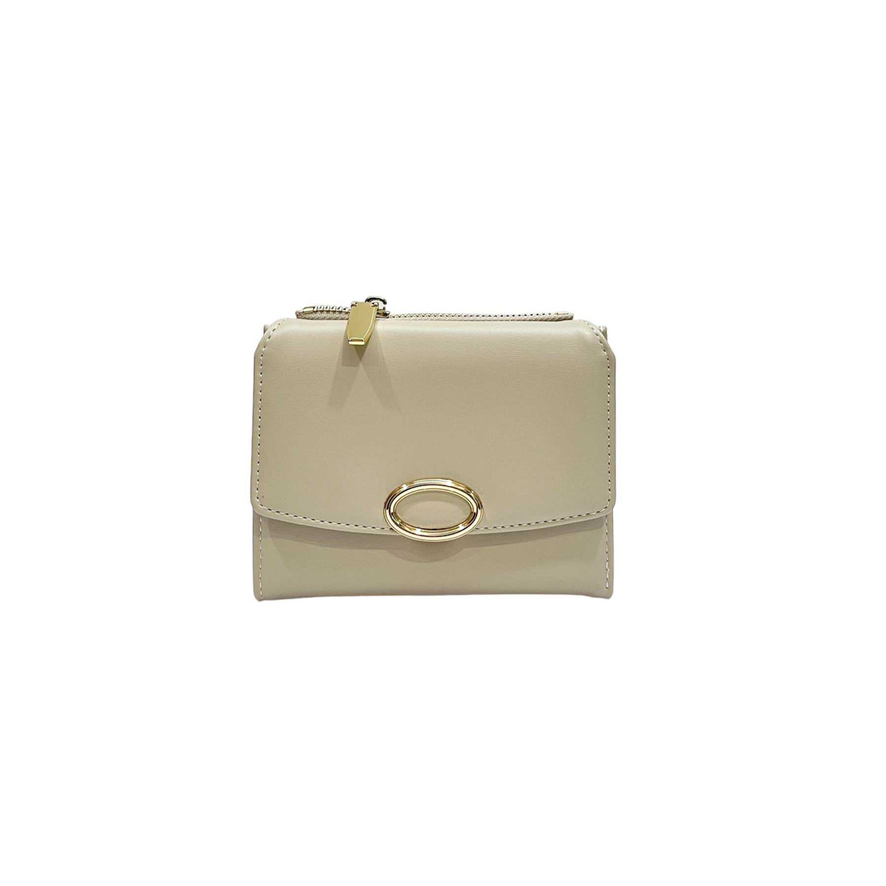These chic and compact wallets feature a smooth leather finish with a sophisticated oval-shaped gold clasp that adds a refined touch. Designed for everyday elegance, they include a top zipper compartment for coins and a tri-fold interior ideal for cards and cash. Perfect for those who prefer minimalist style with a feminine twist.
