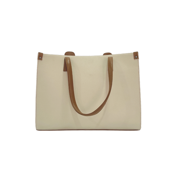 Effortlessly chic and endlessly functional, The Vienna Tote Bag is your go-to bag for work, travel, and everything in between. Crafted in a neutral cream tone with tan accents, it pairs seamlessly with any outfit, adding a touch of sophistication to your everyday look.